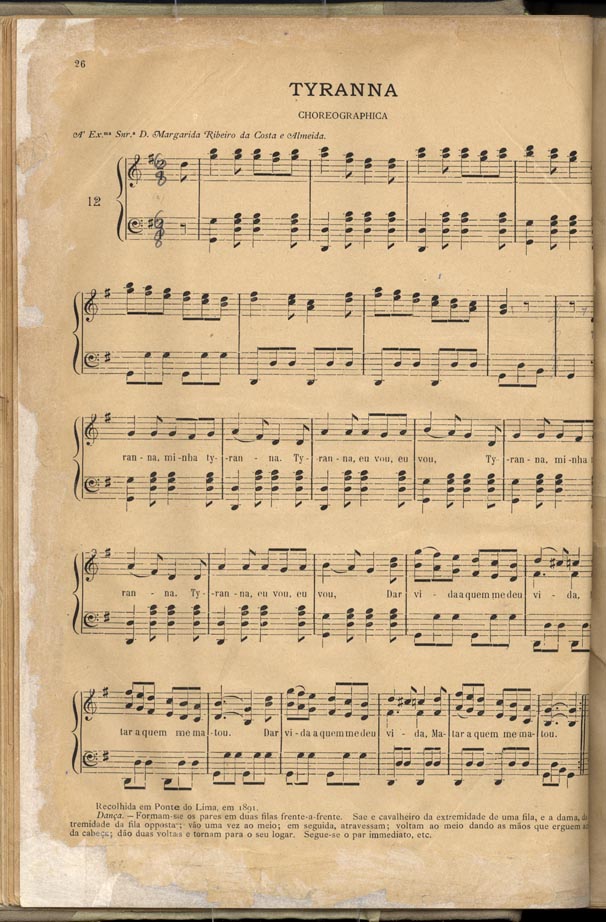 Uma Tyrana recolhida em Ponte de Lima constitui uma das preciosidades do “Cancioneiro de Músicas Populares”. Esta obra pode ser consultada na Biblioteca Nacional de Portugal.