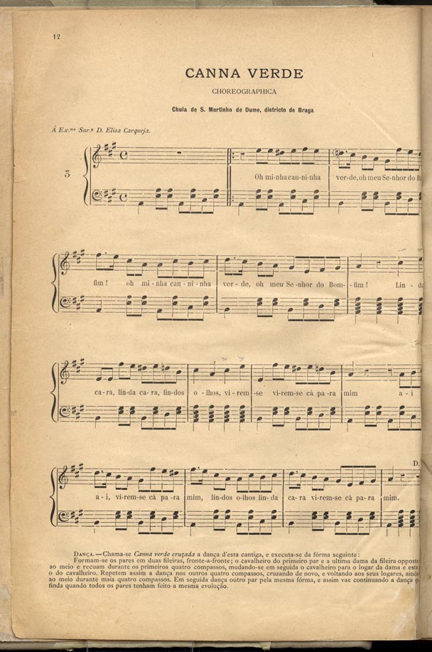 Uma “Cana Verde constitui uma das preciosidades recolhidas em finais do século XIX em S. Martinho de Dume, no Concelho de Braga. Esta música aparece publicada no “Cancioneiro de Músicas Populares” que constitui uma obra publicada em 1893 e que pode ser consultada na Biblioteca Nacional de Portugal.