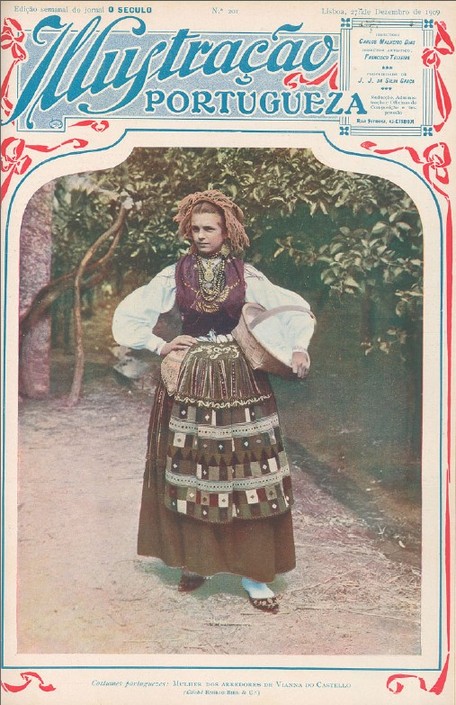 Legenda da capa: Costumes Portuguezes. Mulher dos arredores de Vianna do Castello. (Cliché Emílio Biel & Cª)