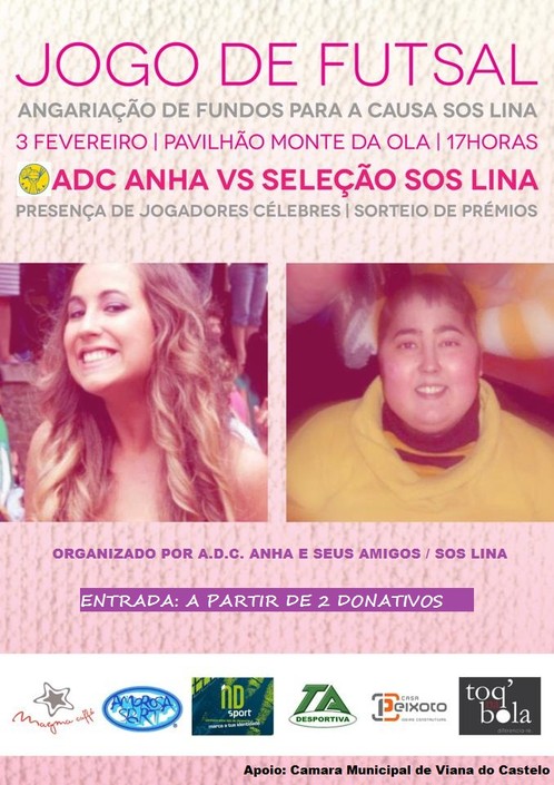 A Associação Desportiva e Cultural de Anha leva a efeito no próximo dia 3 de fevereiro, pelas 17 horas, um jogo de Futsal com o objetivo de angariar fundos para a Lina.