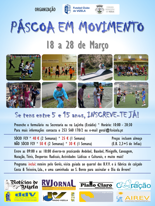 Com o objetivo de ocupar os tempos livres dos mais jovens durante as férias da Páscoa, a Câmara Municipal e o Futebol Clube de Vizela voltam a organizar a atividade “Páscoa em Movimento”, que irá decorrer de 18 a 28 de março.