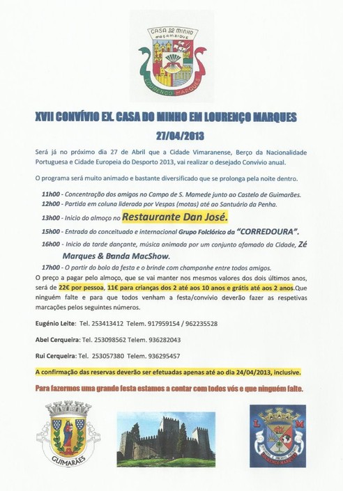 GUIMARÃES RECEBE MINHOTOS DA EX-CASA DO MINHO DE LOURENÇO MARQUES (MOÇAMBIQUE)