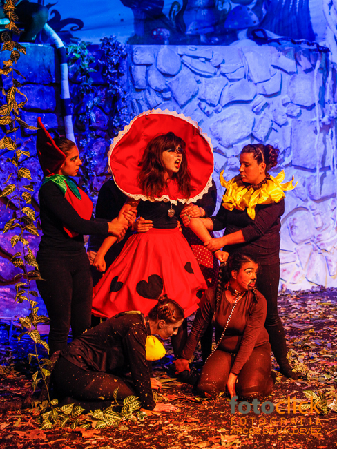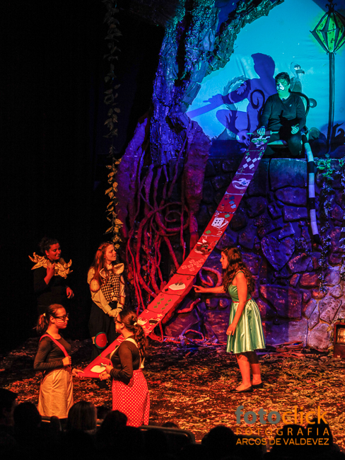 que reenviou o público para o mundo onírico e imaginário de uma adolescente em fase de crescimento, debatendo-se com os problemas pessoais, típicos da sua idade. A falta de maturidade, a responsabilização dos atos, o problema da identidade e inconstância, aliada à necessidade de tomada de decisão, marcaram o percurso desta personagem ao longo da peça, que se viu envolvida numa trama de peripécias onde coabitaram em louca desarmonia seres aparentemente estranhos. Assim, servindo-se de recursos artísticos e culturais, baseados em processos criativos e temas originais compostos pelo elenco, o espetáculo construiu-se pela descoberta e magia que é capaz de provocar no espectador, revisitando o imaginário da literatura infanto-juvenil. A encenação e o texto adaptado estiveram a cargo do professor José Barros, a música/ direção musical foi da responsabilidade do professor Tiago Silva, e a Dança Contemporânea foi orientada pelo bailarino Carlos Silva.