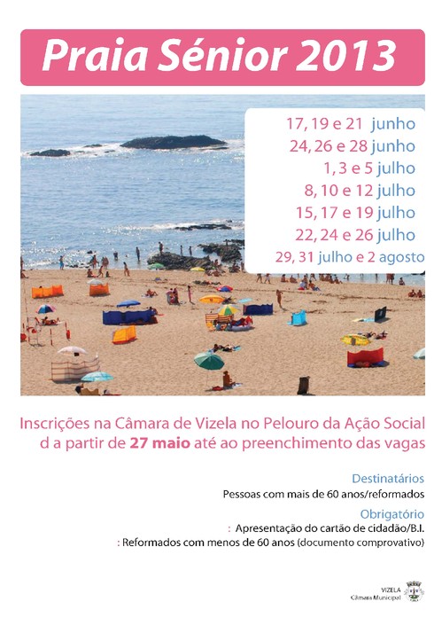 Esta atividade é promovida anualmente pela Câmara Municipal de Vizela desde 2001 tendo como objetivos fundamentais fomentar as relações intergeracionais e desenvolver espaços de promoção social, proporcionando aos idosos a possibilidade de usufruírem das delícias e dos atributos da praia.