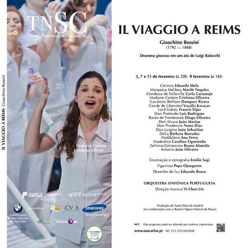 A soprano bracarense Cristiana Oliveira vai estar em palco no Teatro Nacional de S. Carlos, nos próximos dias 5, 7, 9 e 11 de fevereiro, para interpretar o papel da Marquesa Cortese na ópera “Il Viaggio a reims”, de Giachino Rossini, dramma giocoso em um ato de Luigi Balocchi.