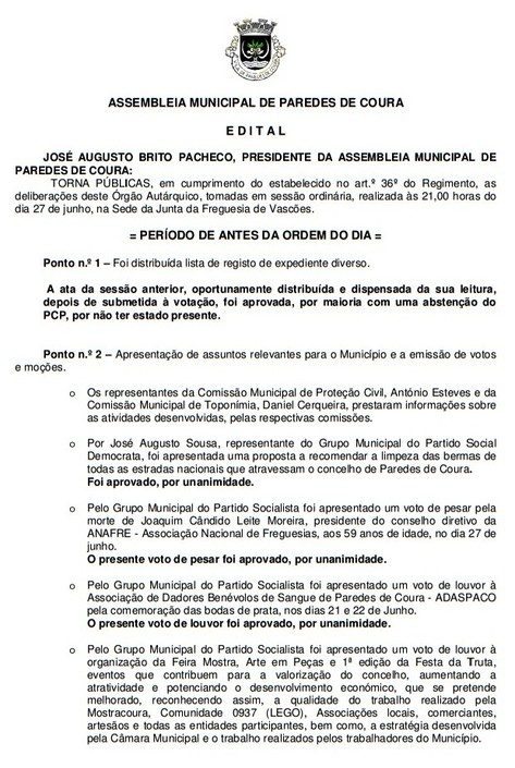 Na sua intervenção terminou dizendo que a concretização deste objetivo será uma mais-valia para o território, funcionando como um fator de atração de novos residentes e visitantes e, consequentemente, podendo ser fatores indutores de dinamização social e económica do território.