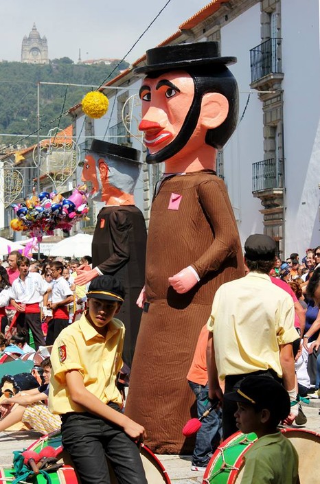 Com quase quatro metros de altura, os cabeçudos desfilam em casais, frequentemente rodeados pelos cabeçudos, completando dessa forma a grotesca família que, com o seu aspeto pitoresco e dançar desajeitado, remetem-nos para um tempo mitológico. De resto, datam de 1265, os registos mais antigos até ao momento encontrados que nos dão conta da existência entre nós de tal tradição, neste caso referente à sua participação nas festividades do Corpo de Deus ocorridas na cidade de Évora.