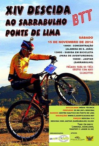 Realiza-se no dia 15 de novembro a XIV Descida ao Sarrabulho em BTT. Esta é a prova maior do Batotas – Clube de Desportos Radicais de Ponte de Lima que desde a fundação do clube, em 1999 promove esta descida radical em BTT, do cimo do monte da Boalhosa até ao Centro Histórico.
