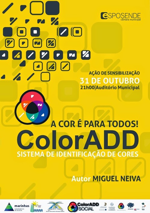 O Município de Esposende, em colaboração com os Agrupamentos de Escolas das Marinhas e António Correia de Oliveira e a Escola Secundária Henrique Medina, vai realizar na próxima sexta-feira, 31 de outubro, às 21h00, no Auditório Municipal de Esposende, uma ação de sensibilização sobre o Programa ColorADD – Sistema de Identificação de Cores.