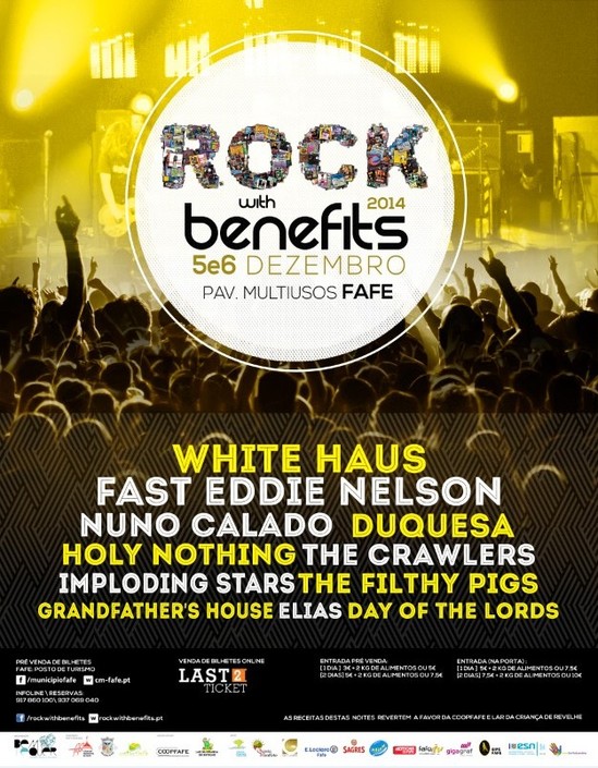 Está aí mais uma edição do Rock With Benefits. À semelhança dos anos anteriores o festival solidário, que se realiza no Pavilhão Multiusos, na próxima sexta e sábado, tem como objetivo angariar fundos e alimentos para cabazes de natal, que serão distribuídos pelas famílias mais carenciadas do concelho.