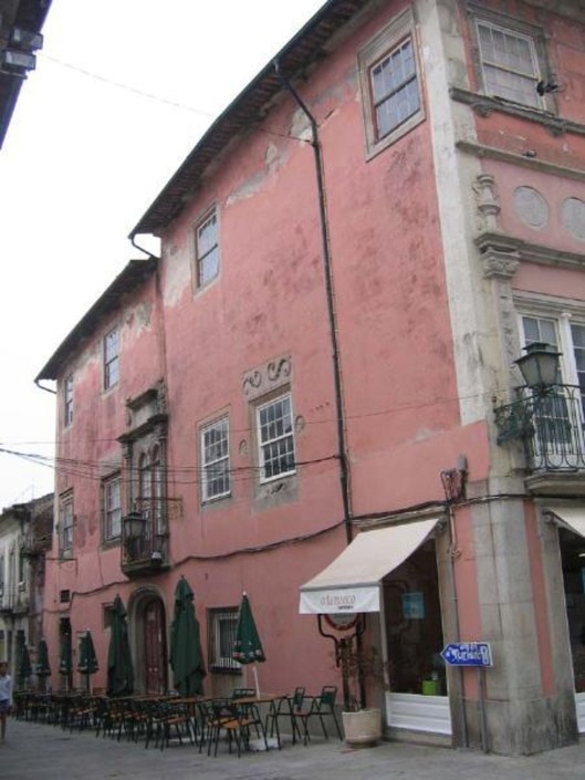 A fachada lateral foi unificada com o projecto decorativo realizado por João Lopes o Velho, uma vez que é notória uma tentativa de uniformização dos dois primeiros edifícios através da decoração. O primeiro registo dos edifícios, sem decoração, apresenta três portais de entrada para a dependência traseira da casa. No segundo registo do primeiro edifício encontramos duas janelas de peito, a da direita decorada no peitoril com enrolamentos vegetalistas e ladeada por dois medalhões. A grande janela de sacada situada ao centro dos dois primeiros edifícios é profusamente decorada. De estrutura mainelada, a janela é ladeada por duas pilastras decoradas na base e no capitel. As bases têm esculpidos dois relevos, à esquerda uma armadura animada, à direita um homem com elmo, e os capitéis possuem motivos vegetalistas. A imposta dos arcos do mainel é rematada por uma máscara zoomórfica. A janela é terminada por friso com duas urnas que enquadram uma cartela gravada com uma inscrição, actualmente ilegível. O edifício central apresenta ainda no segundo registo da sua fachada duas janelas de peito, a da esquerda emoldurada por quatro colunelos, sendo o pormenor decorativo mais interessante dois relevos que ladeiam a moldura, um homem e uma mulher que parecem espreitar, dentro de casa, o movimento da rua. A encimar a janela foi esculpida uma cruz de Santo André. A janela do centro, ladeada por colunelos abalaustrados, apresenta uma cruz de Cristo esculpida em relevo no lintel. O último edifício, à esquerda, possui no segundo registo uma janela de moldura simples, e a rematar o seu pano murário, um terraço assente sobre cachorrada de seres fantásticos.