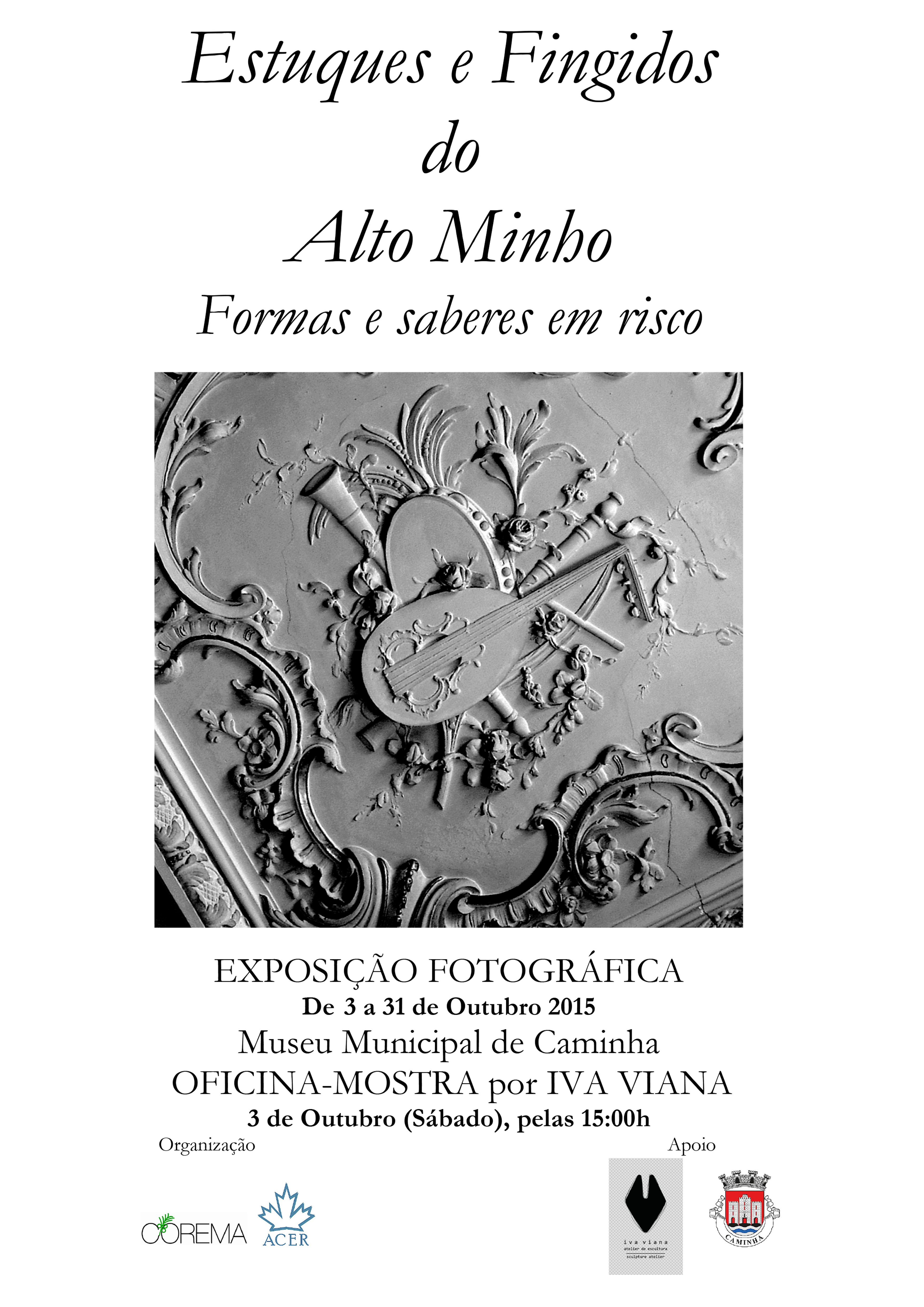 Estuques e Fingidos do Alto Minho é o nome da exposição fotográfica que vai estar patente na Sala de Exposições do Museu Municipal de Caminha de 3 a 31 de outubro. Esta exposição vai ser complementada com uma oficina – mostra a cargo de Iva Viana. A inauguração está agendada para as 15 horas.