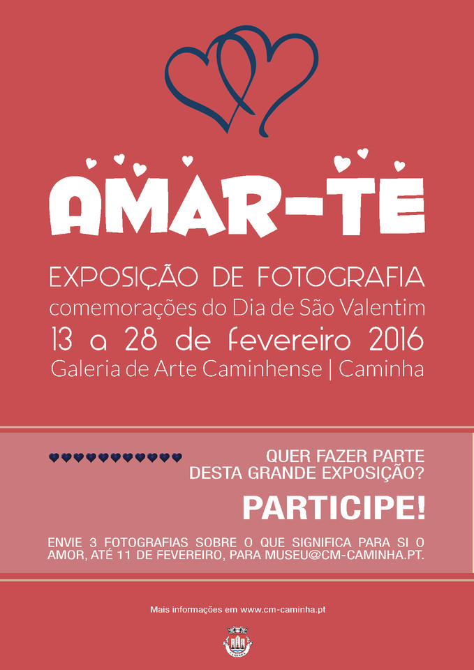 Para fazer deste um grande momento, o Museu Municipal convida a população a participar. Deste modo, os interessados devem enviar três fotografias cujo teor seja o “Amor” para museu@cm-caminha.pt, até ao dia 11 de fevereiro. Posteriormente, o Museu procederá à sua impressão e de 13 a 28 de fevereiro estarão expostas na Galeria de Arte Caminhense, de forma a serem apreciadas por todos aqueles que visitem a exposição.