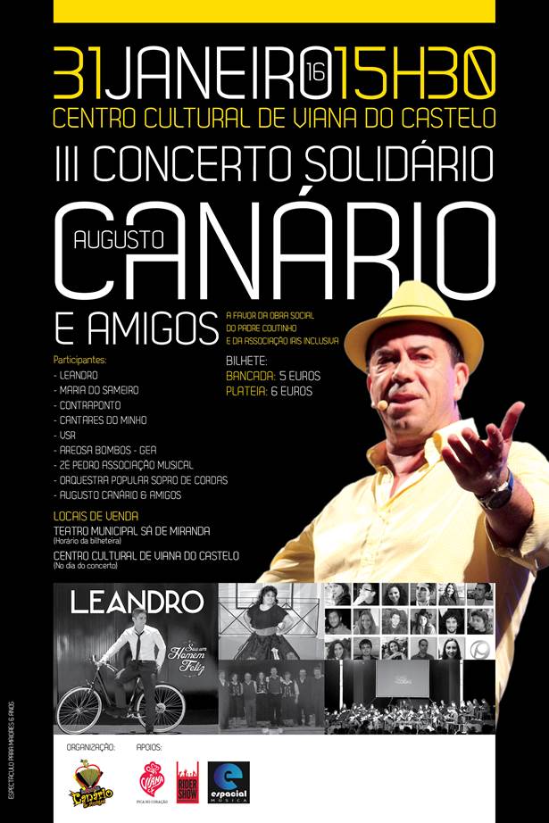 O Teatro Diogo Bernardes, em Ponte de Lima, dando continuidade aos lemas + Teatro + Filarmónicas + Música Clássica + Comédia + Jazz + Dança + Rock + Folk + Indie + Pop + Música + Literatura + Cultura + Educação, etc…, apresenta os principais espectáculos planificados para o período compreendido entre Janeiro e Maio de 2016.