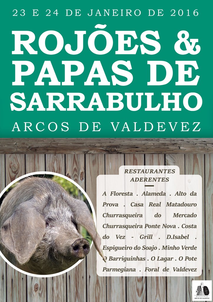 Neste fim-de-semana, dias 23 e 24 de janeiro, Arcos de Valdevez será palco de mais uma edição dos “Ciclos Gastronómicos”, desta vez dedicado à degustação dos tradicionais “Rojões & Papas de Sarrabulho”. Uma iguaria muito apreciada nesta época do ano e intimamente ligada à matança do porco, pela altura do Entrudo.