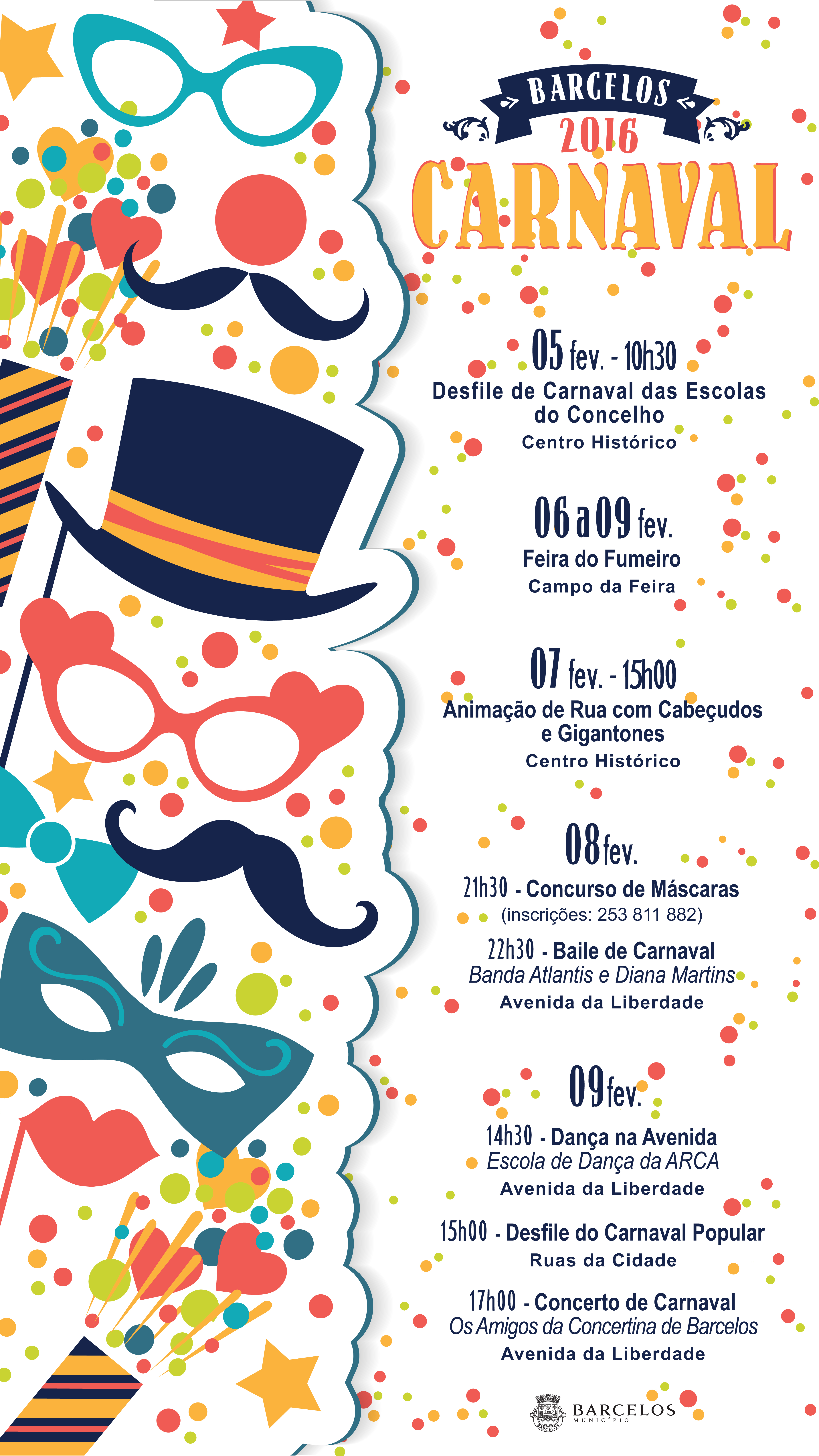 A Câmara Municipal de Barcelos volta a organizar o Carnaval Popular com o tradicional corso de carros alegóricos, desfile de cabeçudos e gigantones, muita música, dança e animação, que invadem, entre os dias 5 e 9 de fevereiro, as ruas da cidade. Uma festa com grande tradição no concelho, que junta 44 associações e atrai, todos os anos, milhares de visitantes. É um carnaval que rememora as verdadeiras tradições do corso de base popular. Um carnaval que sai da rua da aldeia e invade as artérias da cidade num registo único e singular onde a etnografia se junta com a sátira e o humor popular.