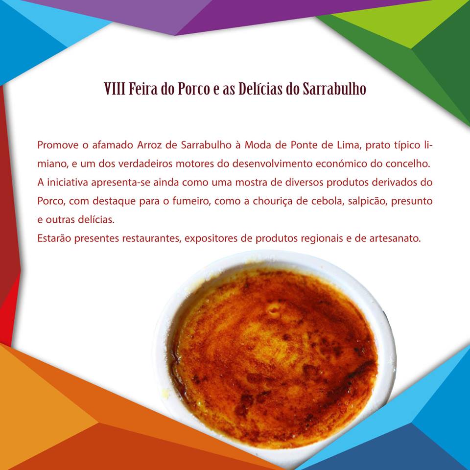 Ponte de Lima prepara-se para mais um fim-de-semana gastronómico de referência. Trata-se da Feira do Porco e as Delícias do Sarrabulho, um evento tradicional que se transforma num verdadeiro motor económico do concelho. É da excelência dos nossos produtos e da afirmação da identidade cultural que resulta o desenvolvimento integrado e sustentado. Tradição, Qualidade e Sabores únicos estão garantidos.