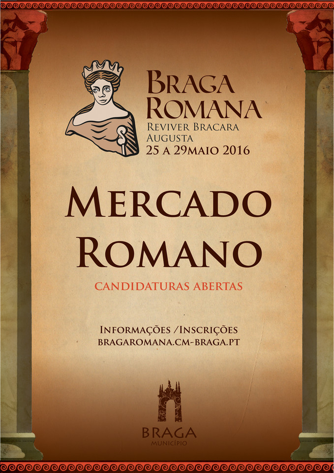 O Município de Braga informa que estão abertas as candidaturas para o Mercado Romano, a realizar no âmbito da 13.ª edição da ‘Braga Romana – Reviver Bracara Augusta’, que decorre de 25 a 29 de Maio, no centro histórico de Braga.