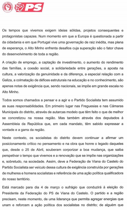 As eleições para escolha do Presidente da Federação do PS de Viana do Castelo estão marcadas para o dia 4 de março e o prazo de apresentação das candidaturas termina a 18 de Fevereiro.