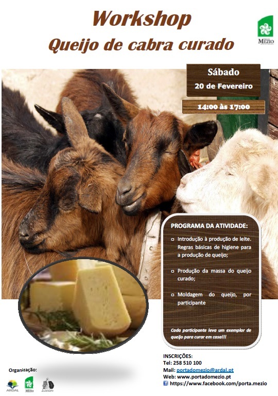 Dando continuidade ao trabalho de divulgação e valorização dos produtos locais, a ARDAL - Porta do Mezio propõe para o próximo dia 20 de Fevereiro, pelas 14 horas, um Workshop de “Queijo de cabra curado”.