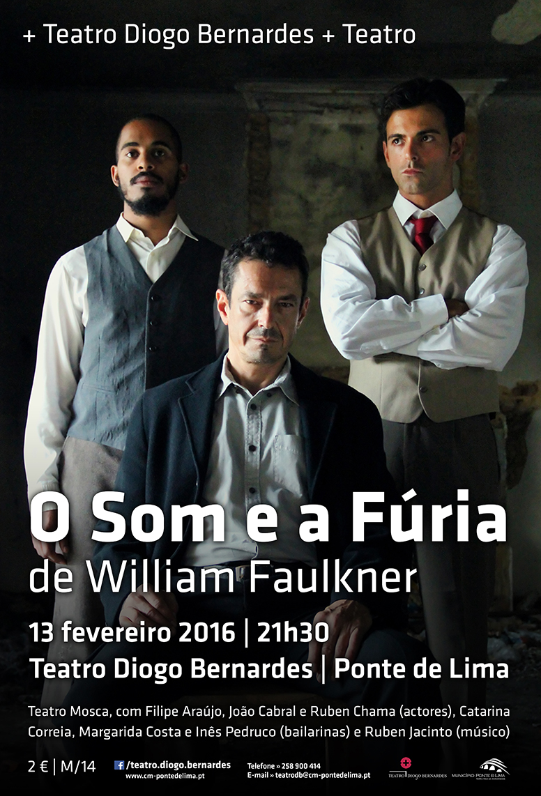 No próximo fim-de-semana, mais precisamente no sábado, 13 de Fevereiro às 21h30, na prossecução dos seus objectivos, orientados para uma programação abrangente e com destino aos mais diversificados públicos, o Teatro Diogo Bernardes, em Ponte de Lima, apresenta o espectáculo de teatro “O Som e a Fúria”, a partir do texto do romancista William Faulkner, a cargo do Teatro Mosca.