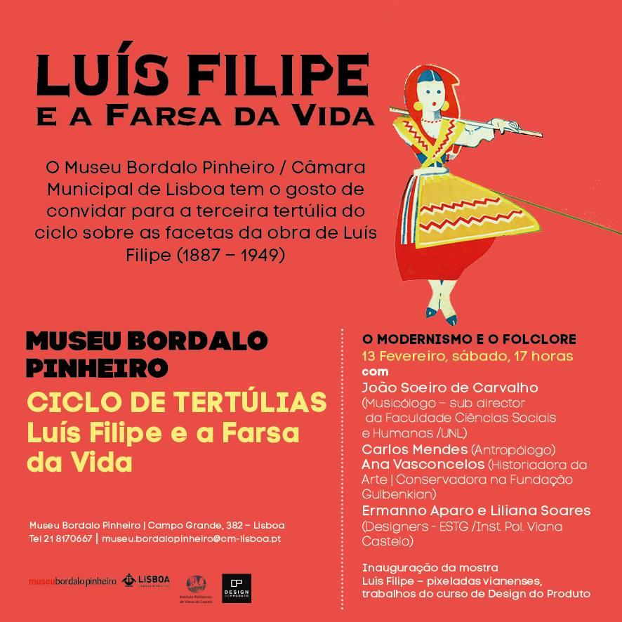 O Museu Bordalo Pinheiro, em Lisboa, leva a efeito uma tertúlia, no próximo sábado, dia 13 de Fevereiro, às 17 horas, no âmbito da exposição Luís Filipe e a Farsa da Vida.