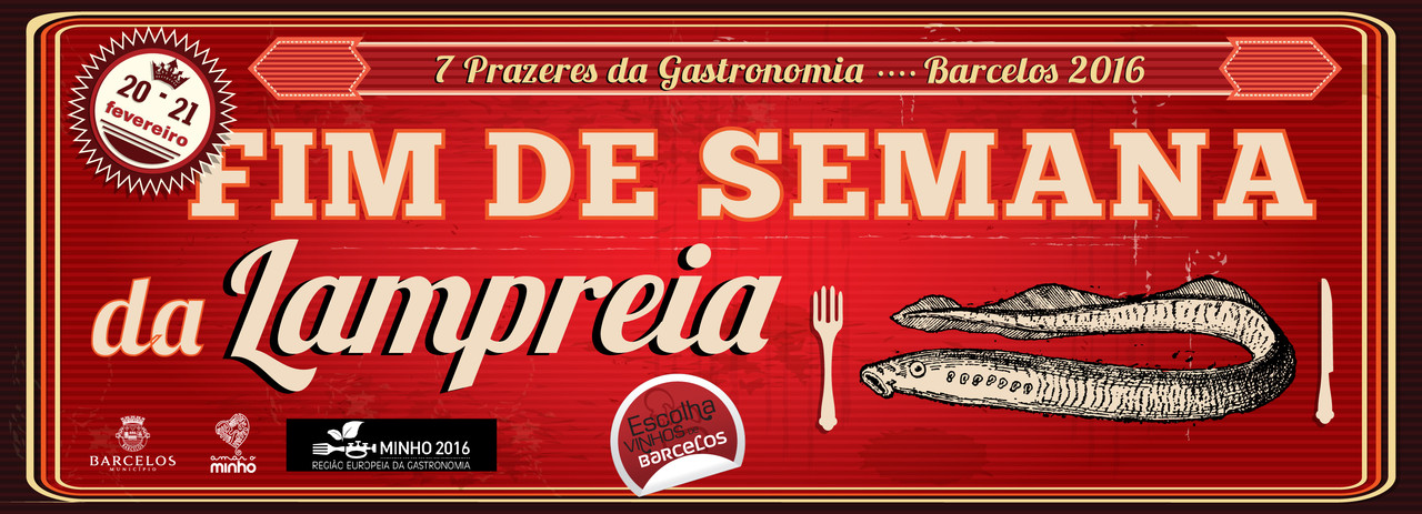 O fim-de-semana da Lampreia, nos dias 20 e 21 de fevereiro, arranca com o programa anual “7 Prazeres da Gastronomia”, numa iniciativa promovida pela Câmara Municipal de Barcelos, através do pelouro do Turismo, no âmbito da política de dinamização do produto estratégico “Gastronomia e Vinho”, que englobará a Semana Gastronómica do Galo, o Fim-de-semana do Bacalhau, o Fim-de-semana dos Petiscos Tradicionais, a XI edição do Concurso Galo Assado, o Fim-de-semana do Pica no Chão e termina em dezembro com o concurso Barcelos Doce.