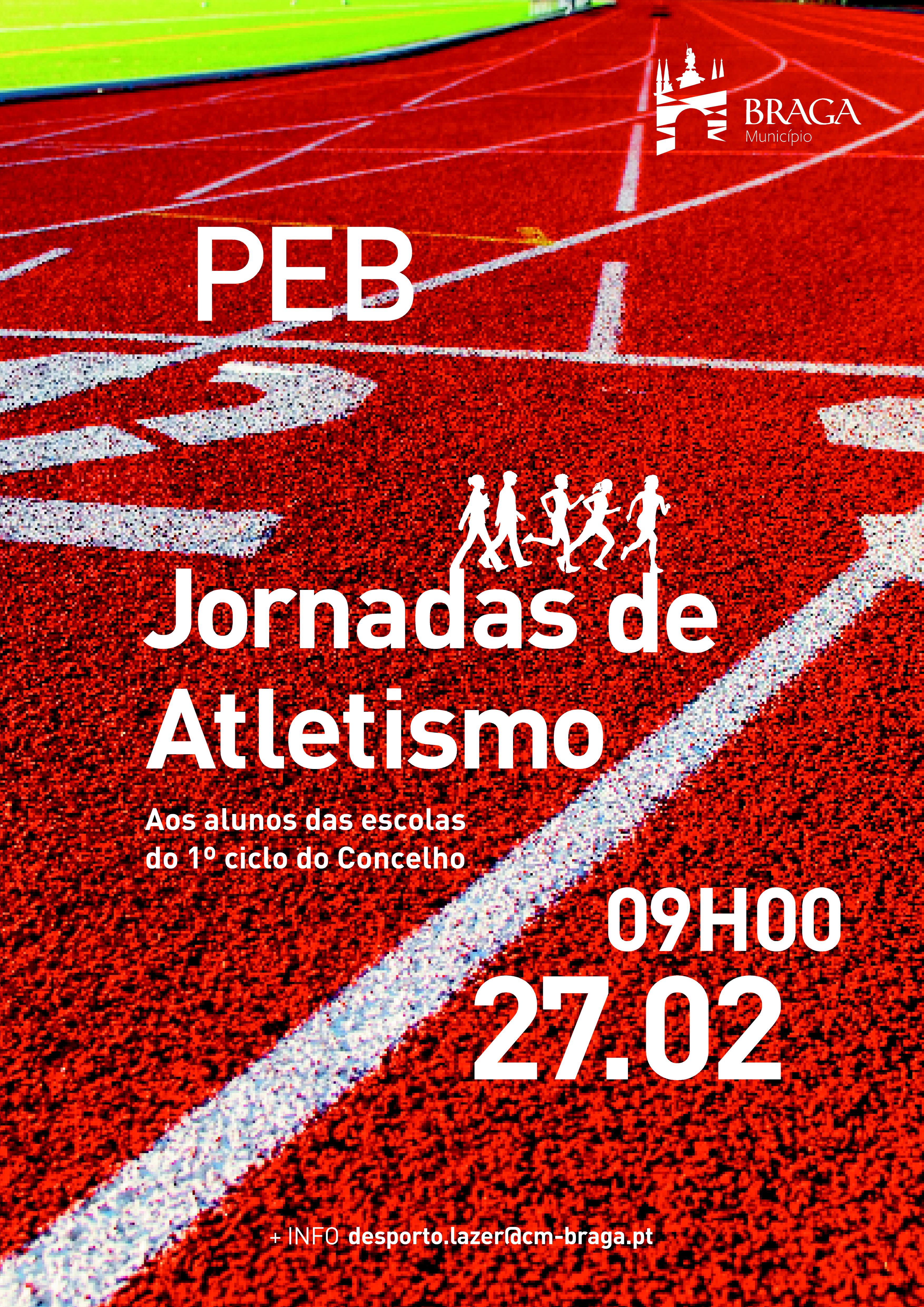 O Município de Braga organiza este Sábado, 27 de Fevereiro, mais umas Jornadas de Atletismo, destinadas aos alunos do 1º ciclo do Ensino Básico do Concelho. A actividade vai decorrer na pista de atletismo do Parque de Exposições de Braga, a partir das 09h30.