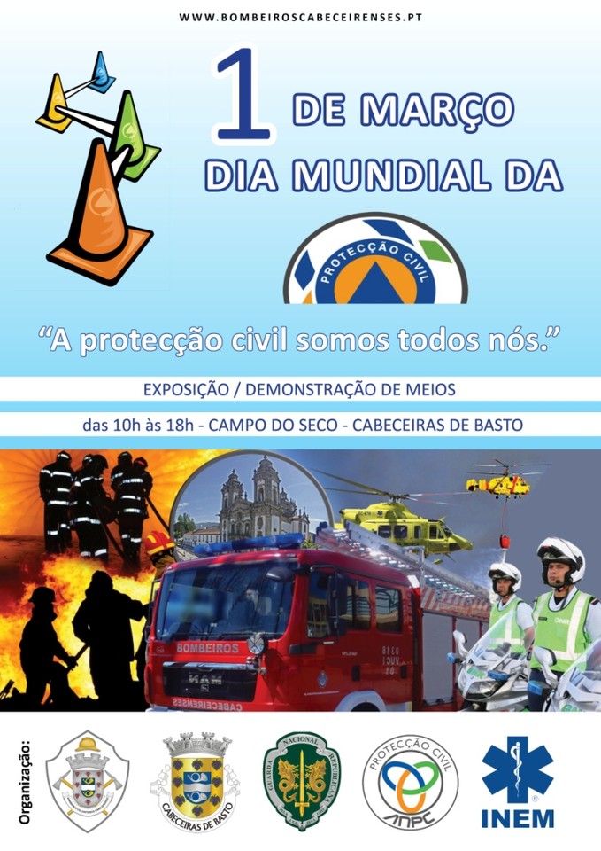 A Associação Humanitária dos Bombeiros Voluntários Cabeceirenses promove no próximo dia 1 de março a comemoração do Dia Mundial da Proteção Civil, contando para o efeito com o apoio da Câmara Municipal de Cabeceiras de Basto, da Guarda Nacional Republicana, da Autoridade Nacional de Proteção Civil e do INEM.