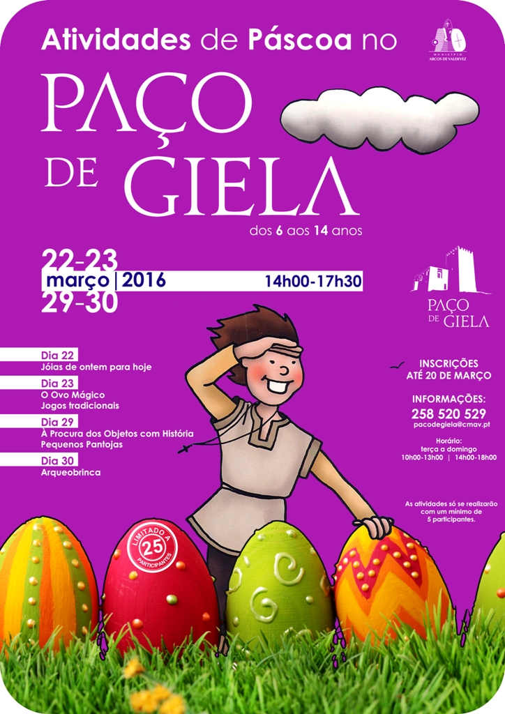 Nos dias 22, 23, 29 e 30 de Março há atividades de Páscoa para os mais novos, dos 6 aos 14 anos de idades, no Paço de Giela.