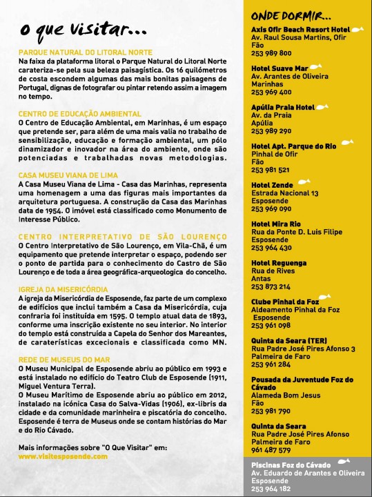 27 de fevereiro, sábado, pelas 21h30. Espetáculo, onde as guitarras são substituídas pela sonoridade do acordeão e violoncelo, conduz o público pelos maiores sucessos do fado, património oral e material da humanidade pela UNESCO. As entradas, no valor de 8,00 € cada, podem ser adquiridas na Loja Interativa do Turismo (T. 251 649 013) ou, uma hora antes, no local do espetáculo.