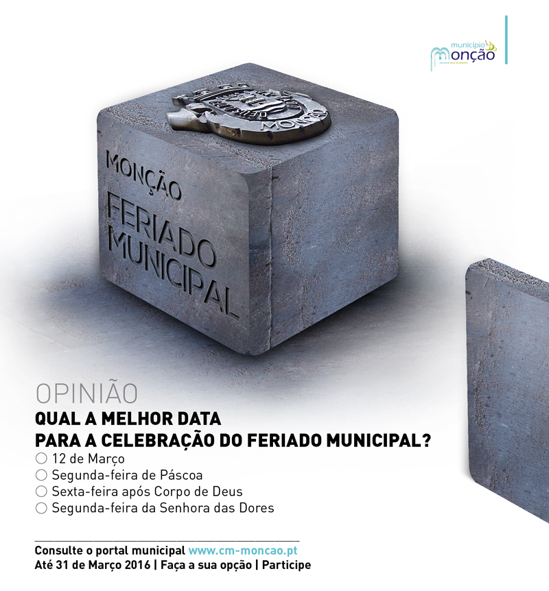 Em apenas dois dias, o inquérito online lançado no portal municipal www.cm-moncao.pt superou a votação de cada um dos 9 inquéritos anteriores, cuja duração variava entre 1 e 2 meses. Em 48 horas, contabilizaram-se 837 votos. Inquérito, apenas consultivo e sem valor vinculativo, prolonga-se até 31 de março. Decisão final, vigente em 2017, cabe à Assembleia Municipal após deliberação no Executivo Municipal. Este ano, o feriado municipal coincide com o feriado nacional do Corpo de Deus (quinta-feira, 26 de maio).