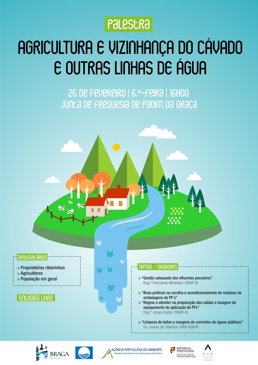O Município de Braga leva a efeito uma palestra intitulada ‘Agricultura e Vizinhança do Cávado e outras linhas de Água’, que se realiza amanhã, Sexta-feira, às 16h00, no auditório da Junta de Freguesia Padim da Graça, em Braga.