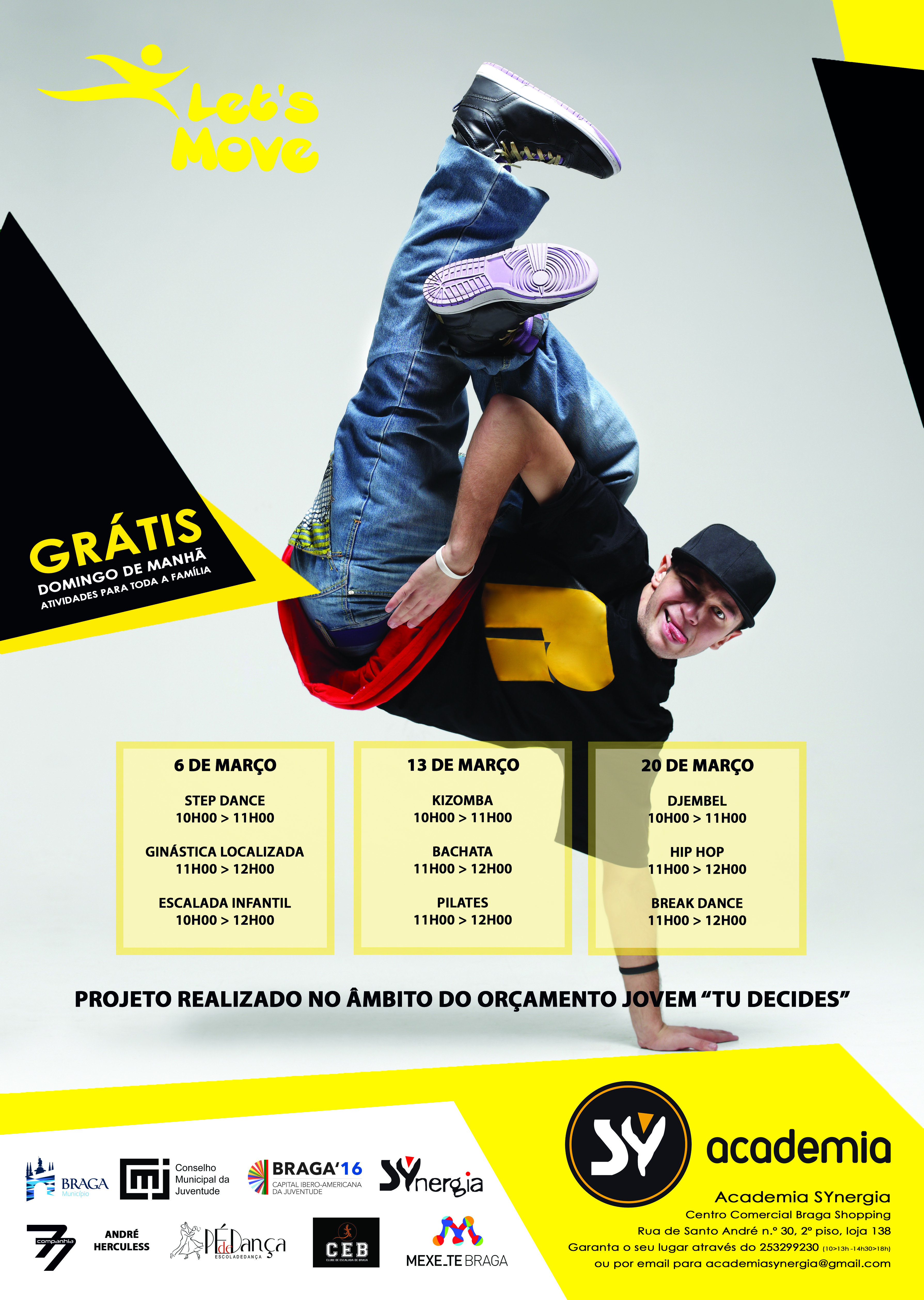 Step dance, ginástica localizada e escalada infantil são as actividades desportivas previstas para mais uma sessão do ‘Let’s Move’, a ter lugar no próximo Domingo, 6 de Março, nas instalações da Academia Synergia, no Braga Shopping (Loja 138).