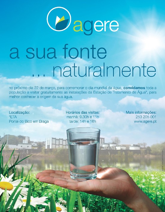 Conhecer a origem da água que chega à torneira dos Bracarenses, é o principal intuito da AGERE ao promover visitas guiadas à Estação de Tratamento de Água (ETA) da Ponte do Bico. A iniciativa realiza-se amanhã, Terça-feira, 22 de Março, assinalando o Dia Mundial da Água.