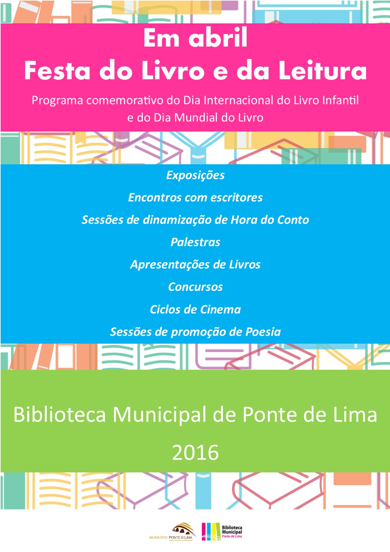 Durante todo o mês de abril o Município de Ponte de Lima, através da Biblioteca Municipal, vai dinamizar um conjunto de ações comemorativas do Dia Internacional do Livro Infantil e do Dia Mundial do Livro, que se assinalam no dia 2 e no dia 23, respetivamente.
