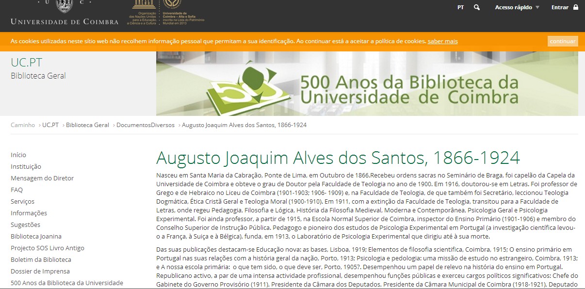 Fernandes, José Marques, “Santos, Augusto Joaquim Alves dos”, em Nóvoa, António (dir.), Dicionário de Educadores Portugueses, Ed. Asa, Porto, 2003, pp. 1250-1261