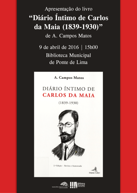 O Município de Ponte de Lima vai promover a apresentação da obra Diário Íntimo de Carlos da Maia (1839-1930), da autoria de A. Campos Matos, no próximo sábado, dia 09 de abril, às 15h00, no auditório da Biblioteca Municipal.