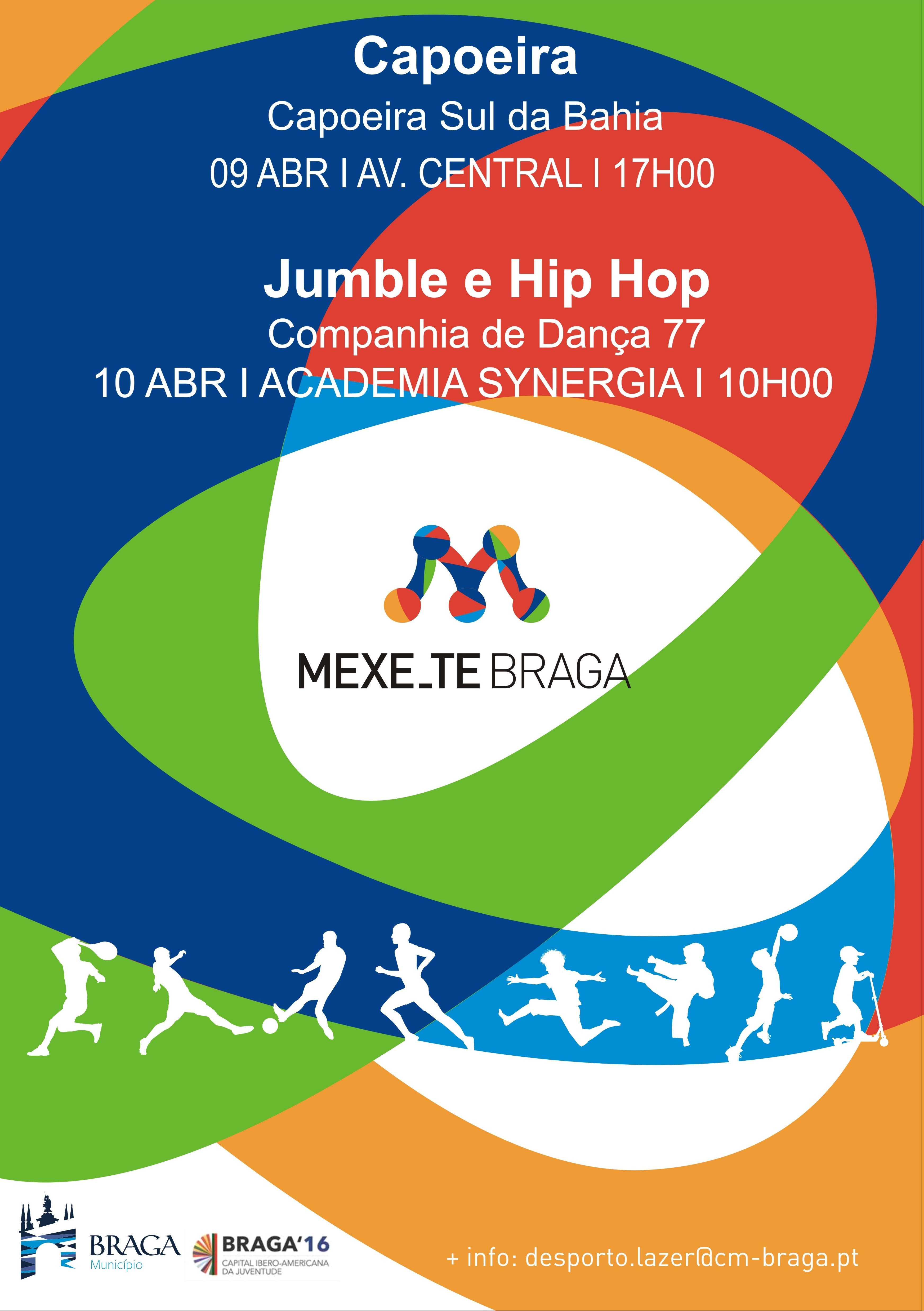 A capoeira, o jumble e hip hop vão estar em destaque este fim-de-semana no âmbito do ‘Mexe-te Braga’, um programa que visa incentivar os Bracarenses à prática desportiva e promover hábitos de vida saudável.