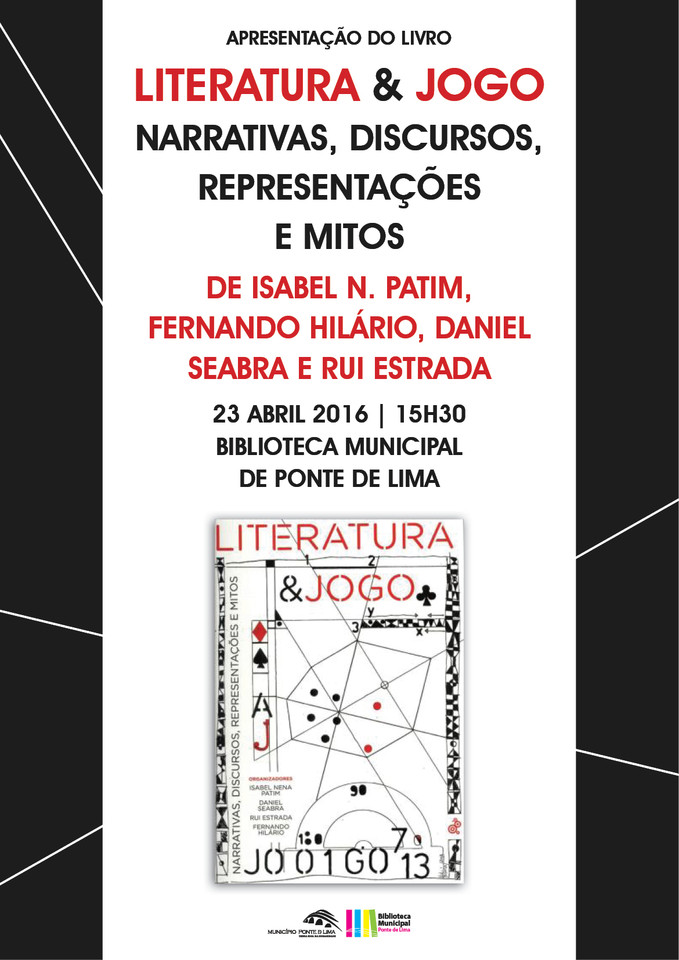 O Município de Ponte de Lima, no âmbito das comemorações do Dia Mundial do Livro e do Direito do Autor, promove a apresentação do livro “Literatura & Jogo – narrativas, discursos, representações e mitos”, organizado por Isabel Nena Patim, Fernando Hilário, Daniel Seabra e Rui Estrada.