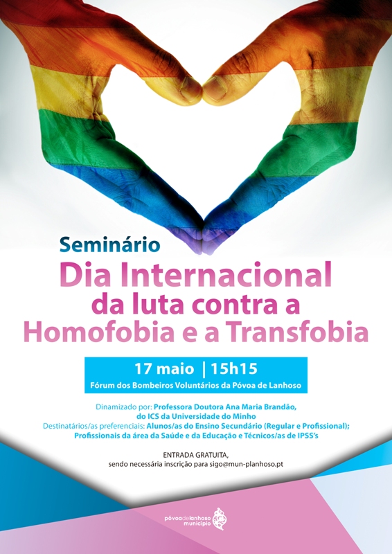 A Câmara Municipal da Póvoa de Lanhoso, através dos serviços de Ação Social e Saúde e do SIGO - Serviço para a Promoção da Igualdade de Género, promove, no próximo dia 17 de maio, a evocação do Dia Internacional de Luta Contra a Homofobia e a Transfobia, através da realização de um Seminário.