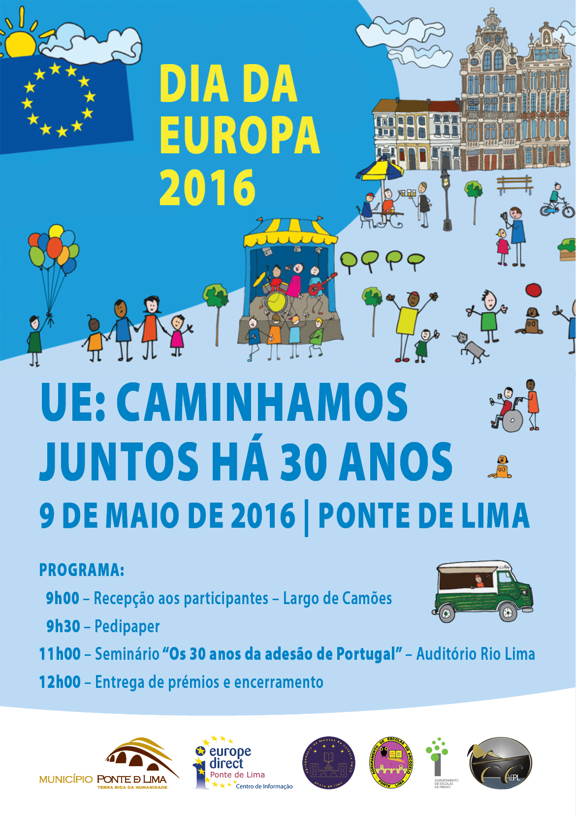 Sob o lema “UE: caminhamos juntos há 30 anos”, as comemorações em Ponte de Lima incluem um Pedipaper às 9h30, a realizar no centro histórico, respondendo a um questionário sobre a efeméride. A concentração está marcada para as 9 horas no Largo de Camões. Segue-se o seminário “Os 30 anos da adesão de Portugal”, às 11h00, no Auditório Rio Lima, prevendo-se o seu encerramento às 12h00, com a entrega de prémios.