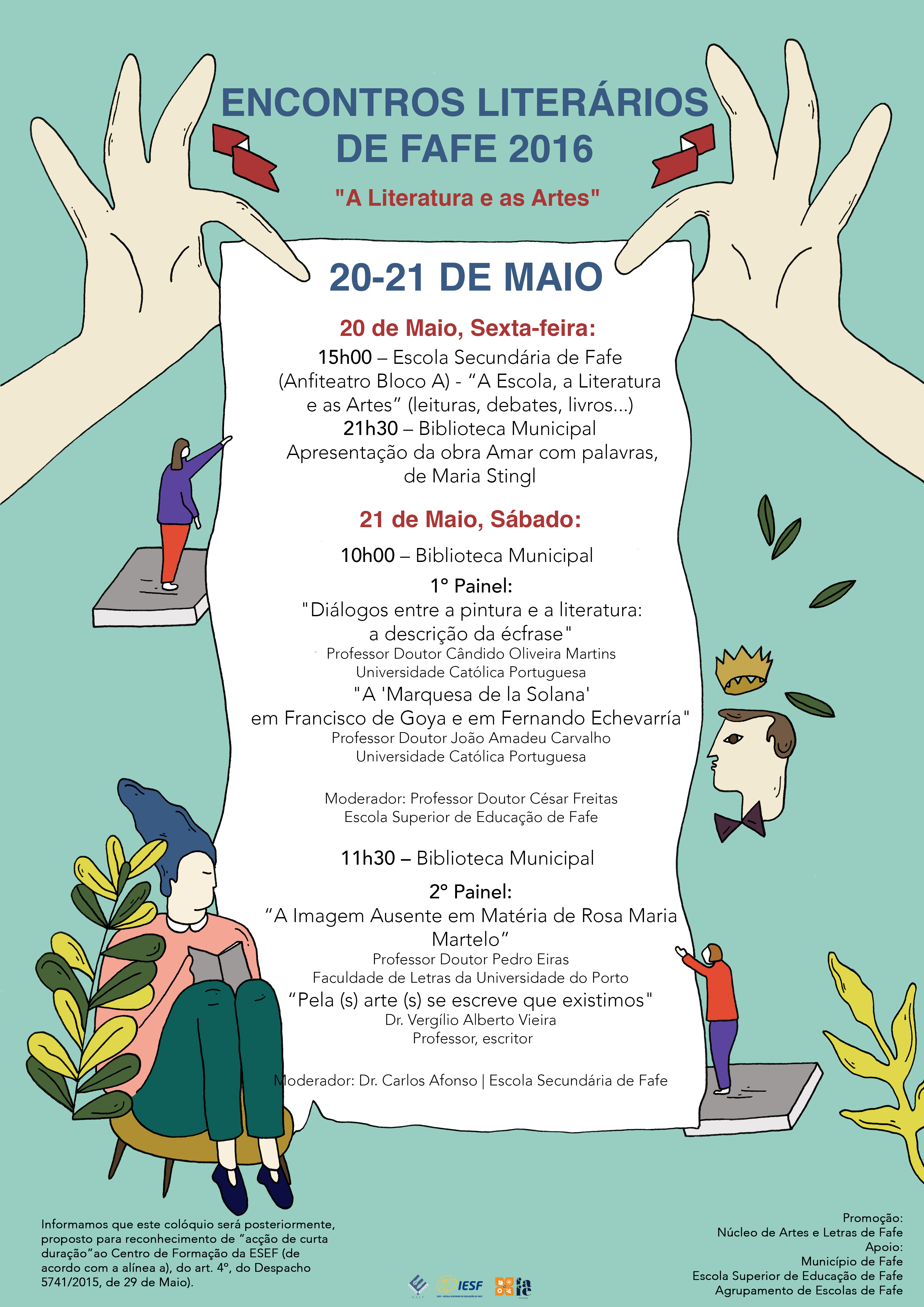 O Núcleo de Artes e Letras de Fafe vai levar a efeito, em 20 e 21 de Maio próximo, uma iniciativa designada ENCONTROS LITERÁRIOS DE FAFE 2016, sob o lema “A Literatura e as Artes”.