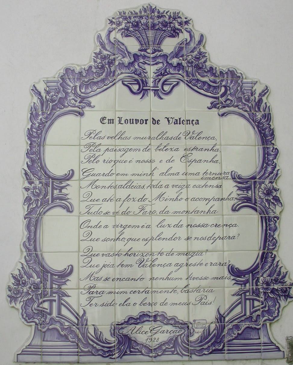 22 painéis mostram a evolução do azulejo português e os principais testemunhos azulejares existentes nos edifícios do centro histórico e da área urbana da cidade. Em especial as paredes revestidas a azulejo da Casa Toga e da Casa Azul, bem perto da Praça da República, duas das grandes referências de Valença, do século XIX, bem como o painel do poema da Alice Garção, na Coroada.