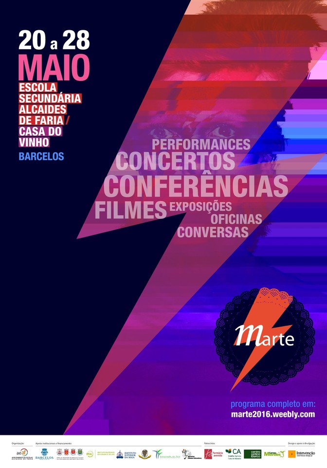 Dezenas de artistas e oradores de todo o país reúnem-se em Barcelos, entre 20 e 28 de maio, para a 8ª edição do mARTE – Mostra de Artes Visuais. Celebrar a diferença é o leimotiv desta edição que se intitula “Life On Mars”, em homenagem ao recentemente falecido David Bowie. A iniciativa é organizada pela Escola Secundária Alcaides de Faria em parceria com a Câmara Municipal de Barcelos, o IPCA, e outras entidades locais.