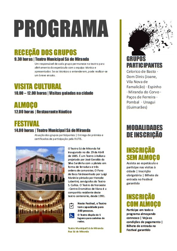A apresentação dos grupos musicais tem lugar no Teatro Sá de Miranda, a partir das 14.30 horas.