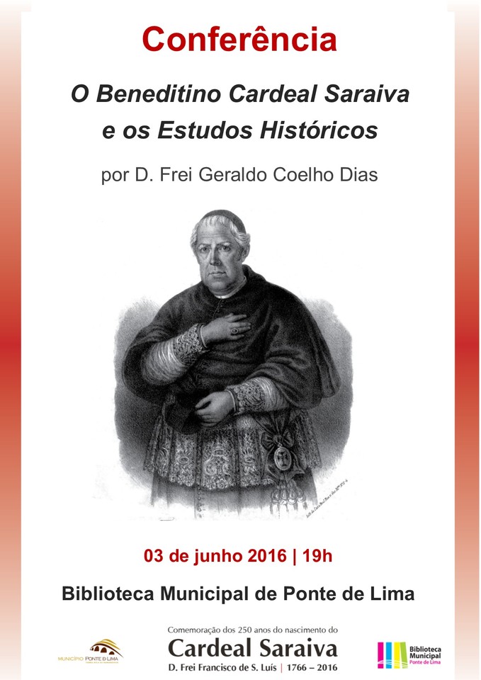No âmbito das comemorações dos 250 anos do nascimento de D. Frei Francisco de S. Luís – o insigne Cardeal Saraiva – o Auditório da Biblioteca Municipal de Ponte de Lima acolhe a conferência O beneditina Cardeal Saraiva e os estudos históricos, orientada por D. Frei Geraldo Coelho Dias.