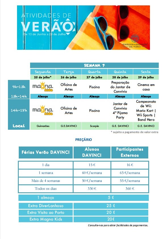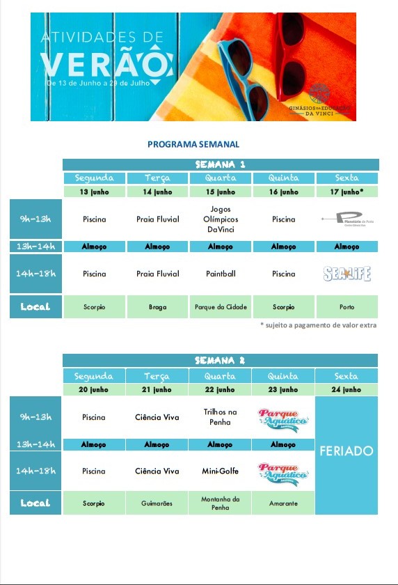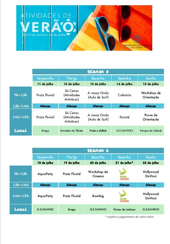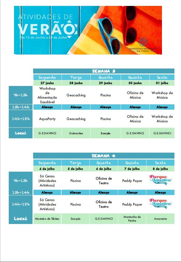 Durante esta edição as crianças poderão participar em diversos ateliês de artes, nomeadamente, musicais e coreografia, teatro e desporto aventura, incluindo atividades como, arvorismo, escalada e slide.