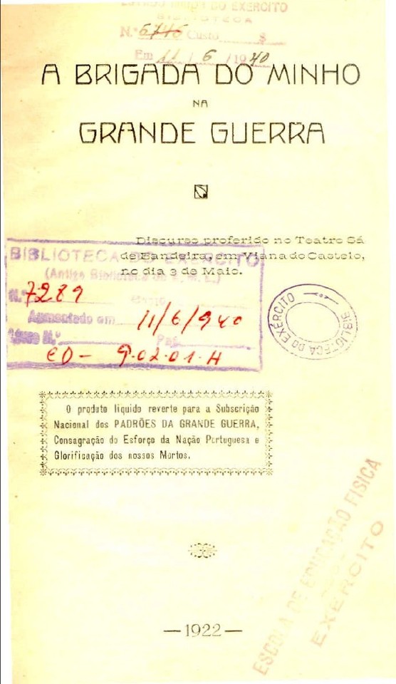 O Tenente-coronel Henrique Pires Monteiro proferiu no dia 3 de maio de 1922, no Teatro Sá da Bandeira, em Viana do Castelo, um discurso subordinado ao tema “A Brigada do Minho na Grande Guerra”.
