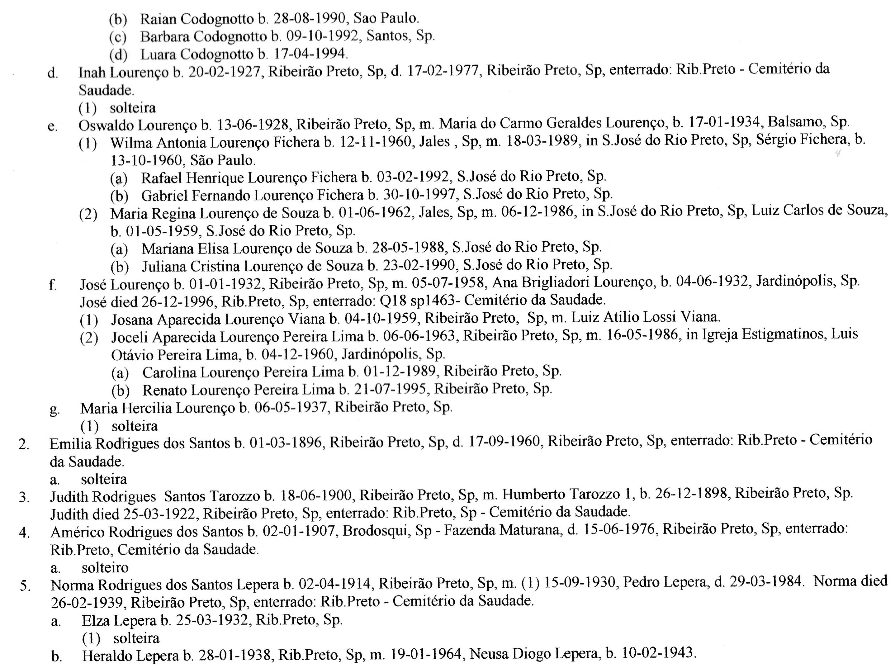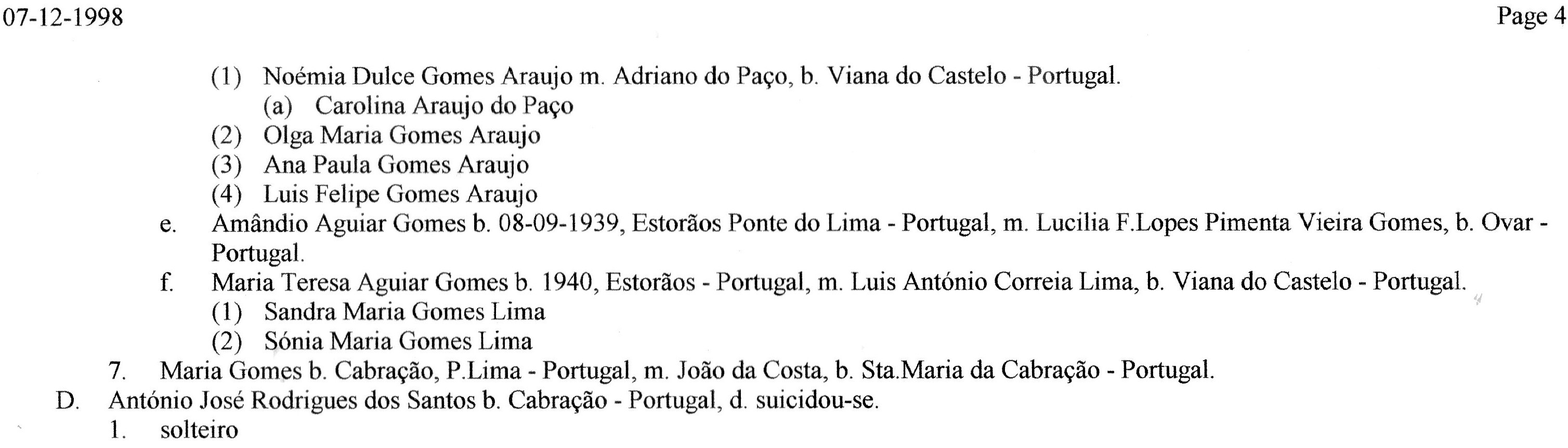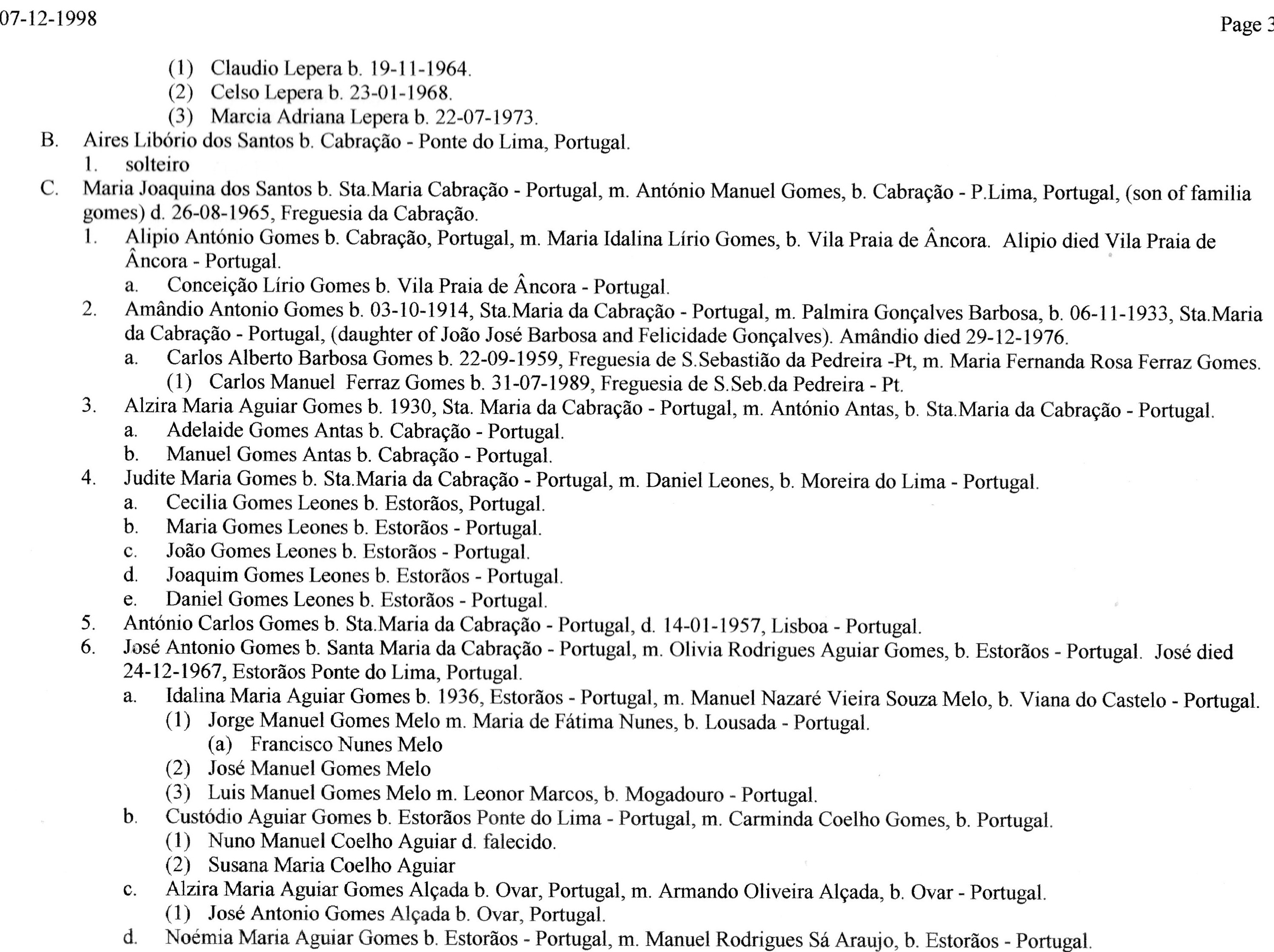Esta listagem genealógica data de 1998, pelo que a informação não se encontra atualizada.